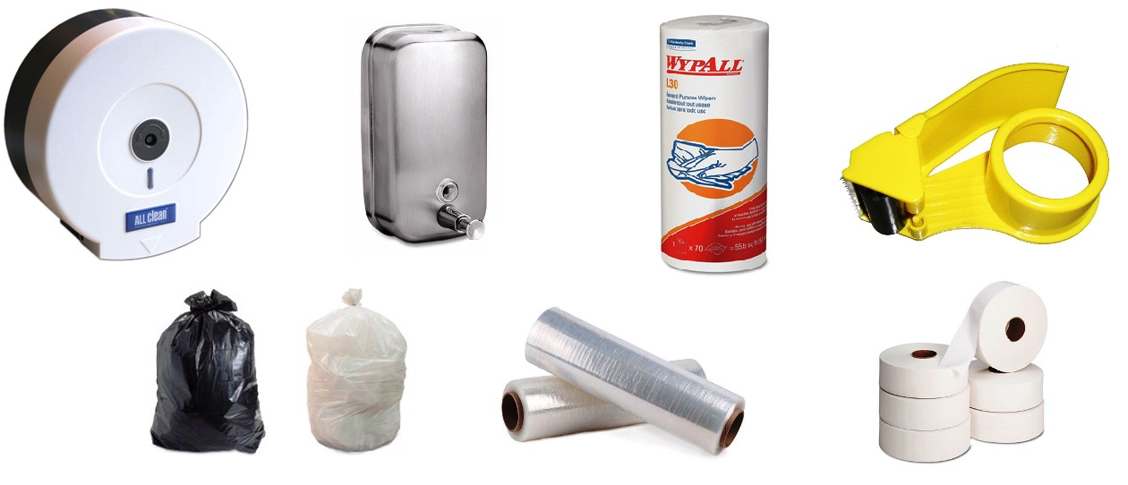 PRODUCTOS DE HIGIENE: PAPEL HIGIÉNICO INDUSTRIAL, SERVILLETAS, TOALLAS INTERCALADAS, TOALLIN, VASOS Y CUBIERTOS PLASTICOS, MOPAS.